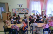 Сегодня в детском саду в каждой группе прошли занятия по безопасности. Воспитатели рассказали детям как вести себя при пожаре, научили пользоваться противогазом, ватно-марлевой повязкой.
