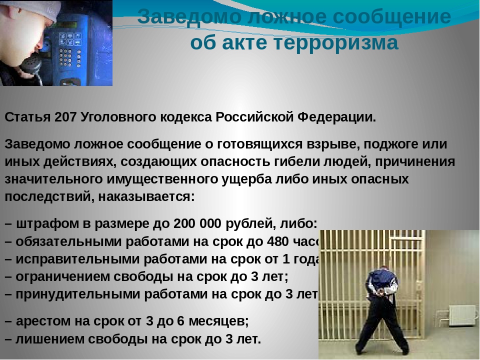 8. Информация об уголовной ответственности за ведомо ложное сообщение об актах терроризма: