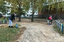 Сегодня в нашем детском саду прошёл средник. Вся территория была очищена от опавшей листвы и сухих веток.