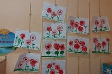 Дети рисовали маки с помощью надутого полиэтиленового пакета.
