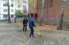 Сегодня в нашем детском саду прошёл средник по очистке территории от опавших листьев.