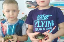 В старшей группе № 6 проходит тематическая неделя "Рептилии". Один из воспитанников принёс и рассказал о своих красноухих черепахах.