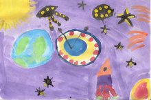 Конкурс рисунков в ДОУ №111 среди воспитанников логопедических групп №1,6,9, посвященных "Дню Космонавтики". Учитель - логопед Карпова Л.М. 03.04.2015