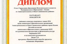 Детский коллектив под руководством инструктора по физической культуре Барашкова Н.И. и музыкального руководителя Джура Т.Я получили Диплом по программе "Произвольный танец без предмета" в номинации "Формейшн".