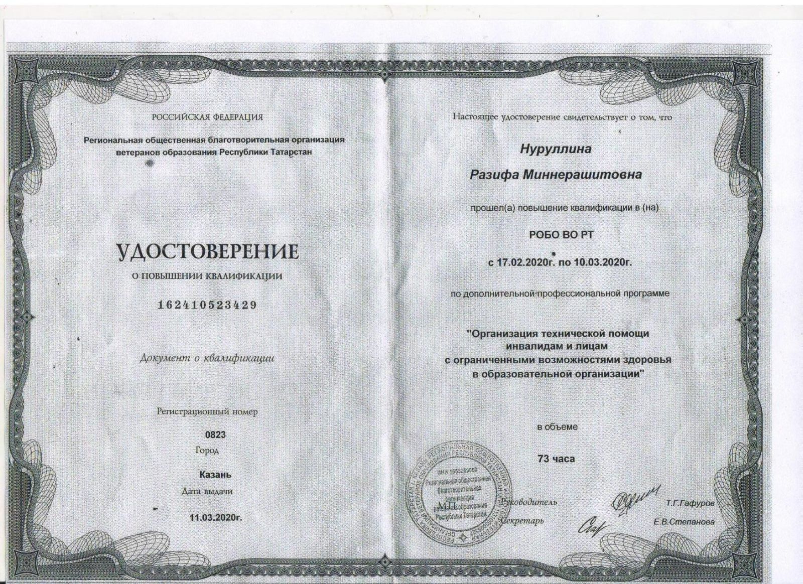 курсы повышения квалификации «Организация технической помощи инвалидам и лицам с ограниченными возможностями здоровья в образовательной организации» /upload/storage/org2822/files/удостоверениеМАДОУ Детский сад № 392.jpg