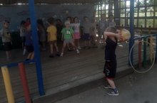 Сегодня в нашем детском саду прошёл самый долгожданный летний праздник - «День Нептуна». В гости к ребятам пожаловал морской царь Нептун вместе с Русалочкой . Русалочка рассказала ребятам, что коварный Пират украл у Нептуна его волшебный трезубец и обратилась к ним за помощью. Дети прошли все испытания Пирата: младшие собирали вместе с Русалочкой «больших» и «маленьких» рыбок, дети средней группы вместе с Пиратом ловили рыбок удочкой, а для старших ребят эстафету «Передай спасательный круг» провёл сам морской царь Нептун. Во время игр дети проявили ловкость, смелость, быстроту, настойчивость и, в награду за это, Пират вернул Нептуну его трезубец. Морской владыка очень обрадовался и поиграл с детьми в свою любимую игру «Море волнуется», во время которой дети перевоплощались в морских обитателей: рыбок, крабов, морских черепах и морских звёзд. А ещё морской царь Нептун вспомнил вместе с детьми правила поведения на воде. В завершение праздника гости вместе с детьми станцевали весёлый зажигательный танец «Море».