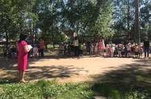 Праздничное мероприятие провели на свежем воздухе. Дети пели песни, танцевали и с удовольствием участвовали в играх – состязаниях: бой горшков, бег в мешках, перетягивание каната, скачки, бег с ведрами и т.д.
