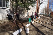 Сегодня сотрудники детского сада провели плодотворную работу по благоустройству фасада здания и по очистке территории детского сад от мусора.