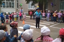 Сотрудник госавтоинспекции Оксана Сергеевна совместно с педагогами ДОУ провела игру с детьми старшего дошкольного возраста "Юный пешеход". Наши воспитанники продемонстрировали знания правил безопасного поведения на улице, приняли участие в тематической викторине.Победители получили призы.