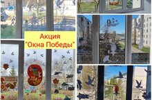 Чтобы поблагодарить участников Великой Отечественной Войны, сказать им «Спасибо за героизм и стойкость» - наш детский сад принял участие в акции «Окна Победы". Окна детского сада украшены главными символами победы – Вечным огнём, звёздами, георгиевскими лентами, поздравительными надписями, салютом, цветами и Белыми Журавлями. Мы благодарим наших Героев и говорим им: "Спасибо за Победу! Спасибо за ваши подвиги, за наш мир! Спасибо за мужество, героизм, отвагу и смелость!"
