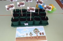 в рамках проекта «Растем вместе – Бергә үсәбез» воспитанники группы "Капельки" посадили семена "Сосны", и каждый день будут наблюдать, как из маленького семечка сначала проклюнется маленький росточек, а потом будет расти и постепенно вырастет росточек, который будет украшать участок группы "Капельки"
