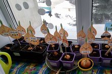 Как-то раз в конце зимы посадить решили мы в землю репчатый лучок, золотистый бочок. Дружно принялись за дело и работа закипела. Вот земелька, вот совок – помогай, скорей, дружок! Мы поставили на солнце наш посаженный лучок, светит нам оно в оконце, подрастай скорей, дружок! За лучком мы наблюдаем с интересом каждый день, как подсохнет – поливаем, позабыли и про лень! Суган утырту! Төп максаты - балаларда суган үстерү теләге тудыру, хезмәткә хөрмәт тәрбияләү, суганның файдалы яшелчә икәне турында төшенчә бирү, суган үстерү турында белемнәрен тулыландыру.