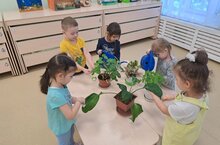 Цель: упражнять детей в несложных навыках ухода за растениями: поливать их, вытирать пыль на листьях; поддерживать интерес к растениям, воспитывать желание ухаживать за ними.