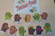 Учить детей отщипывать пластилин и располагать его по всему шаблону аккуратно; закреплять умение пользоваться клеем и кисточкой; формировать представления детей о варежках, их назначении.