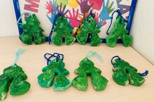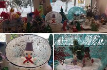Новогодние и зимние сюжеты семейного творчества украсили наш детский сад, что внесло праздничное настроение в новогодний интерьер.