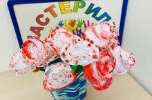 Цель: Учить делать розы из ватных дисков. Закреплять полученные ранее навыки работы с подручными материалами. Развивать художественный вкус, умение видеть прекрасное и передавать свои чувства в поделках воспитывать самостоятельность, аккуратность в работе, любовь к родным.