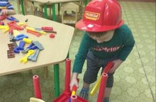 задачи: воспитывать уважение к труду взрослых, закрепить значение слов свзанных с названиями профессий, действий и орудиями труда.