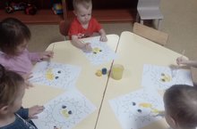 - Продолжать знакомить детей с новым способом рисования – тычкование по контуру.