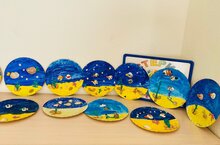 — учить тонировать объемную форму (камень) и наносить на него рисунок;