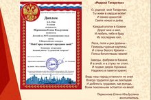 Воспитатель нашего Детского сада, Перминова Елена Ильдусовна, стала лауреатом II Всероссийского конкурса «Мой Город отмечает праздник свой!» в литературной номинации, где у педагога появилась прекрасная возможность продемонстрировать свой талант в поэтическом мастерстве представив стихотворение «О, родной мой Татарстан!». Поздравляем!