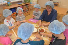 В подготовительной к школе группе "Радуга" в рамках работы по лексической теме "Продукты" был проведён День чая. Дети узнали о том, где растет чай, как его собирают, какие виды чая бывают, с чем его пьют, как попадает чай в магазины города. Воспитатель Перминова Елена Ильдусовна предложила испечь к чаю пирожки с яблоками.