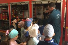 Сегодня ребята из подготовительной группы "Кораблик" стали гостями пожарной части №5. Экскурсия по пожарному депу, несомненно, вызвала интерес у детей. В первую очередь ребят, конечно же, заинтересовали пожарные машины. Старший пожарный показал ребятам пункт связи, технику. Он рассказал про пожарную технику и показал детям, как и чем, оборудованы машины, для чего служит тот или иной предмет из многочисленного пожарно-технического вооружения.