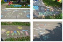 Сегодня в нашем детском саду конкурс рисунков на асфальте "Путешествие в лето". Каждый рисунок получился ярким и интересным.