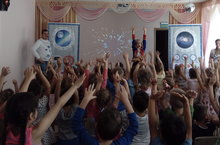 Сегодня ребята стретились с гостями из студии научно-итерактивных программ о космосе "Реальная Астрономия". Дети посмотрели художественный интерактивный научный спектакль "Небесные Герои". В ходе поиска планеты Маленького Принца участники спектакля познакомились с созвездиями казанского неба: Орион, Лебедь, Большая и Малая медведица, а также с персонажами: Космонавт, Маленький Принц и кукольный персонаж Звездочет.