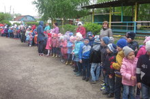 Трогательный сегодня получился праздник, посвященный Великому Дню - Дню Победы. Дети с замиранием сердца слушали аудиозапись об объявлении войны и о её окончании, танцевали под песни военных лет, читали стихи о героях войны и о Великой Победе, почтили память доблестным героям минутой молчания и даже отведали солдатской каши... Почетным гостем на нашем празднике была Ульяна Леонидовна, которая будучи ребенком, помогала "ковать" Победу, работая на заводе. Дети с большим интересом слушали рассказ Ульяны Леонидовны и о том чудовищном дне, когда началась война и о том как ей, ребенку, было страшно, когда вокруг разрывались снаряды. Мы неустанно говорим спасибо вам, дорогие наши ветераны, за мирное небо над головой!!!