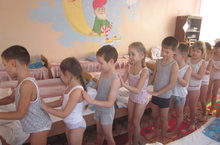 В рамках Недели здоровья в детском саду проводятся открытые оздоровительные мероприятия. Сегодня воспитатель подготовительной к школе группы №11 Гилазиева Г.Ш. продемонстрировала педагогам ДОУ закаливающие процедуры после сна с использованием нетрадиционного оборудования.