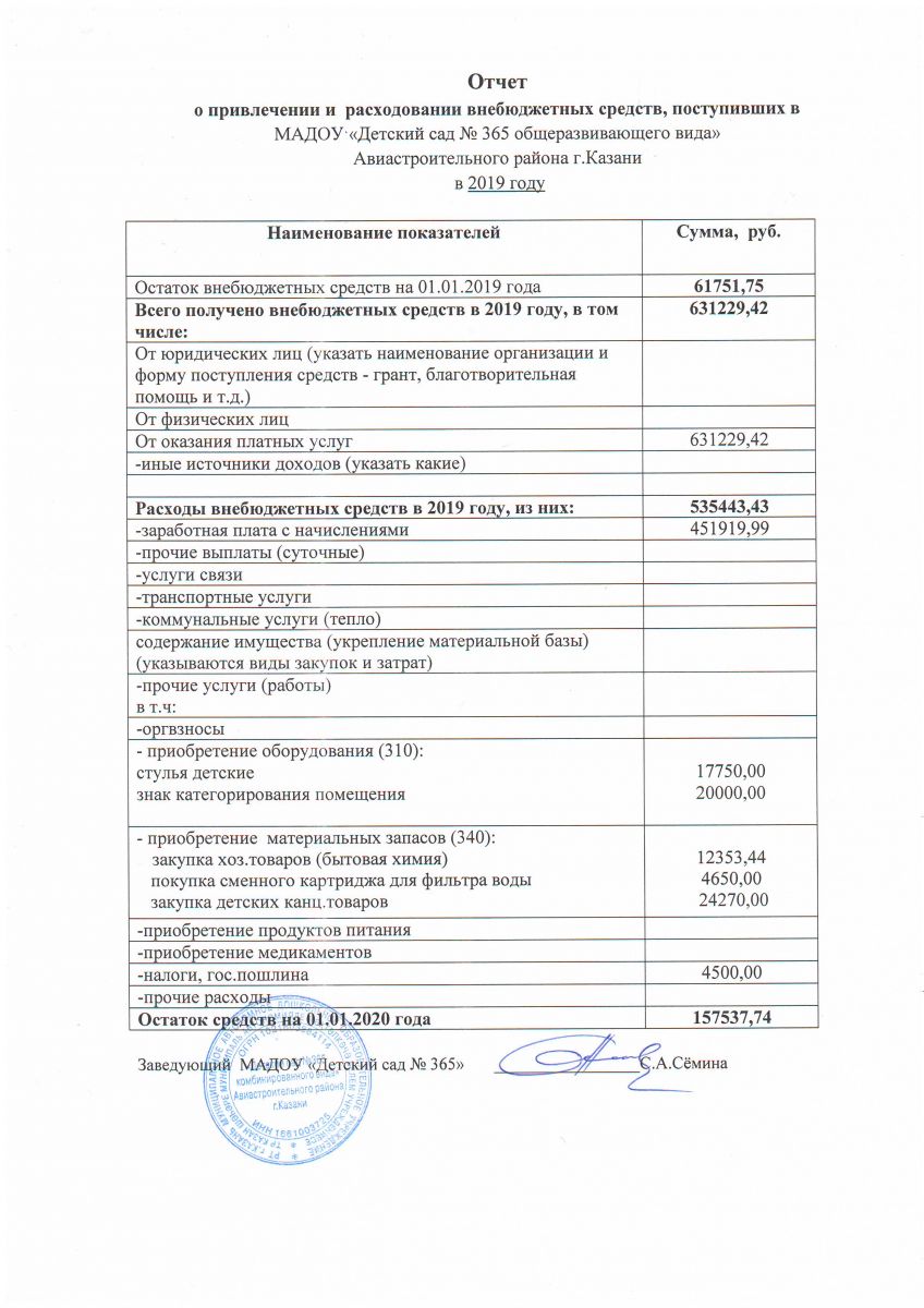 Отчет о привлечении и расходовании внебюджетных средств за 2019 год