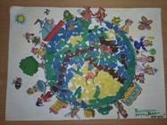 Сегодня мы решили сделать коллективную работу на эту тему.Заранее приготовили рисунок нашей планеты,используя в виде наглядного пособия глобус и фантазию детей при составлении композиции.