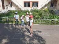 Одной из форм организации активности детей на воздухе в летний оздоровительный период являются игры на асфальте. Сегодня дети играли в подвижную игру –прыгалку «Классики».Дети совместно с воспитателями рисовали и придумывали разные варианты этой игры. Получилось очень интересно и увлекательно.