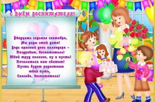 Быть воспитателем — это настоящее призвание. И пусть ваша работа вовсе не легка, но вы ее выполняете на «отлично». В ваш профессиональный праздник хочется поблагодарить вас за теплоту, заботу и внимание к нашим детям. Искренне пожелать вам крепкого здоровья, благополучия, терпения, успехов, счастья и радости.