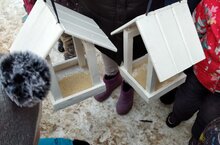Зимой птицам приходиться трудно. Природный корм ( рябина, семена растений, насекомые) заканчивается или оказывается под снегом. Чтоб птицы не замерзли от холода и голода, на территории детского сада воспитатели с детьми развесили кормушки. Ежедневно, во время дневной прогулки, дети подкладывают корм, а заодно, знакомятся с разновидностью зимующих птиц, повадками, чем правильно подкармливать, развивают матиматические навыки, знакомятся с окружающим миром.