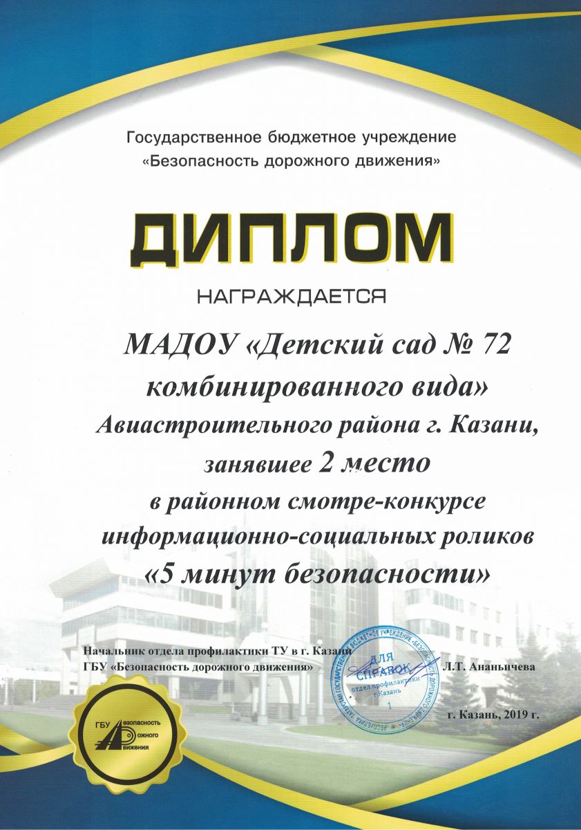 Грамота за 2 место в районном конкурсе Время кукол Мир профессий, 2018 год.