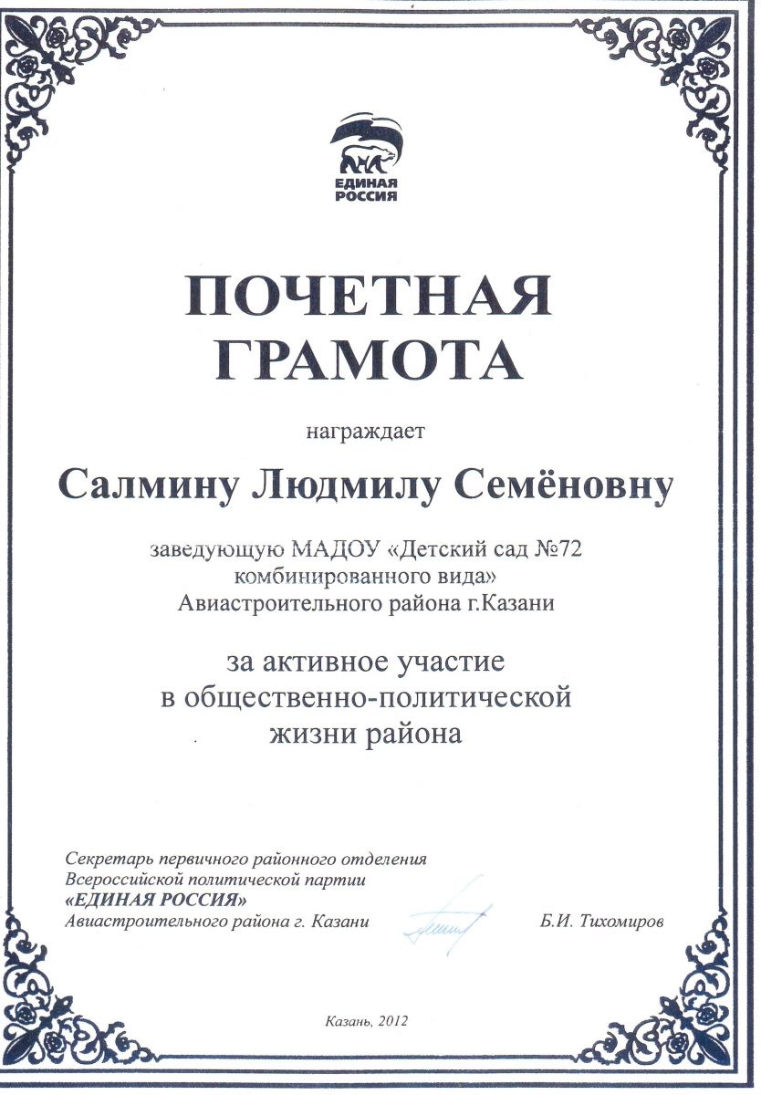 Грамота Отдела Управления Образования Бургановой Л.Х. за подготовку полуфиналиста конкурса чтецов