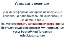 Для переоформления права на получение дополнительной компенсации Вы можете подать заявление на Портале государственных и муниципальных услуг Республики Татарстан (uslugi.tatarstan.ru), читать далее...