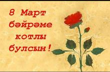 Хөрмәтле гүзәл затлар, коллегалар, әниләр, әбиләр! Сезне матур бәйрәмегез белән чын күңелдән тәбриклибез. Ныклы сәламәтлек, бәхет, якыннарыгызның хөрмәтен һәм сөюен, иминлек, бөтен изге эшләрегездә яңадан-яңа уңышлар телибез!