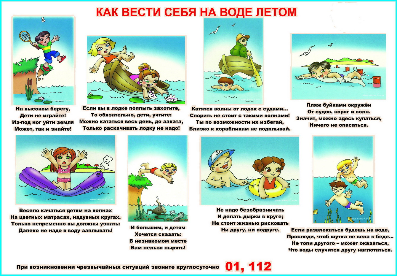 РЕБЯТА! Самый полезный отдых летом — это отдых на воде. Купаясь, катаясь на лодках, на катамаранах, гидроциклах вы укрепляете организм, развиваете ловкость и выносливость. Вода не страшна тем, кто умеет хорошо плавать. Вот почему первым условием безопасности на воде является умение плавать. Однако и умеющий плавать должен быть дисциплинированным, постоянно соблюдать осторожность и правила поведения на воде.- Нарушение правил поведения на воде ведет к несчастным случаям и гибели людей. s/Памятка правила поведения на воде(2).jpg
