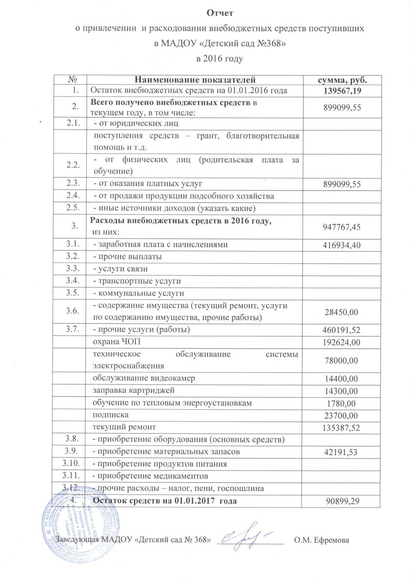 Отчёт о привлечении и расходовании внебюджетных средств в 2016 году