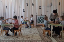 Сегодня в детском саду прошел шахматный турнир среди детей, посещающих кружок "Шах и Мат".Играя в шахматы можно решить много задач: