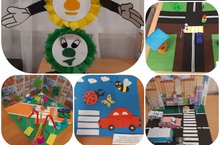 Сегодня отправили поделки и рисунки на конкурс "Безопасная дорога в детский сад!" и "Я, дорога и мой железный друг!".Конкурс направленные на пропаганду безопасности дорожного движения, обучение дошкольников Правилам дорожного движения, с элементами совместной работы по предупреждению детского дорожно-транспортного травматизма с ГИБДД. Дети должны знать, что люди ходят по тротуарам, переходят улицу по переходам при разрешающем сигнале светофора; что детям играть у дороги и на тротуаре нельзя; транспорт ездит по правой стороне мостовой; знать назначение и сигналы светофора; определять по сигналу светофора, в каком направлении разрешено движение транспорта и людей; виды транспорта; правила езды на велосипеде, роликах; о профессии полицейского; что необходимо носить светоотражающие элементы на одежде в вечернее время.