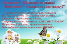 ВНИМАНИЕ! АКЦИЯ! " СДЕЛАЕМ ИЗ САДА СКАЗКУ!" 14.05.2018