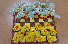 В рамках конкурса "Экофэнтази" воспитатели Хасанова Гульназ Фиргатовна и Низамова Миляуша Сабировна смастерили настольную игру "Весёлые шашки" для детей 5-7 лет.