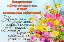 Детсад огромный организм,Неразрушимый механизм.Всех будем дружно поздравлять,Нельзя ваш труд разъединить.Нянь, педагогов самых классных,И поваров наших прекрасных,Все руководство, персонал,Не перечесть нам всех похвал.Вас поздравляем от души,Удачи, счастья, теплоты,И в коллективе понимания,В карьере вашей процветания.Ваш труд бесценен...Путь всегда, вам улыбается судьба. -