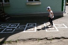 ИГРА В "КЛАССИКИ".Мелом разбит асфальт на квадратики,Прыгают девочки эдак и так.Строгий порядок, как в математике,Продуман до мелочи каждый шаг.Смотрю я на них и вдруг, засмеявшись:"Девчонки, примите в классы играть!"Тихонько хихикнув и засмущавшись,Лепечет одна:" Фто? Ш нами шкакать?""Я только разочек, туда и обратно,Самое главное - мне б не упасть!"Малявка, нос морща, сказала:" Лядна!Вуку дявай мне, я будю дизать!"И я поскакала на правой ножке,Смеялись дети над тётей большой...А руку мою сжимала ладошка,Сердце согрев мне своей теплотой.Правила игры в "Классики" читайте в новостях -