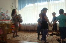 Людмила Ивановна проводит зарядку в подготовительной группе. И предлагает сделать ее вместе:Солнце глянуло в кроватку,Раз, два, три, четыре, пять.Все мы делаем зарядку,Надо нам присесть и встать.Руки вытянуть пошире,Раз, два, три, четыре, пять.Наклониться — три, четыре.И на месте поскакать.На носок, потом на пятку.Все мы делаем зарядку.