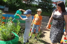 Наталья Анатольевна вместе со своими воспитанниками изучили литературу и интернет - ресурсы о декоративных растениях, благоприятных для нашего климата и решили благоустроить клумбу на своем участке. Высадили цветы и стали ежедневно за ними ухаживать. Сегодня Ильназ очень увлечен самим процессом деятельности - поливом цветов.