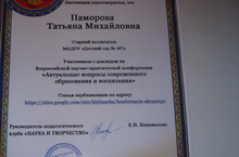Старший воспитатель Паморова Т.М. участвовала с докладом на Всероссийской научно - практической конференции "Актуальные вопросы современного образования и воспитания".